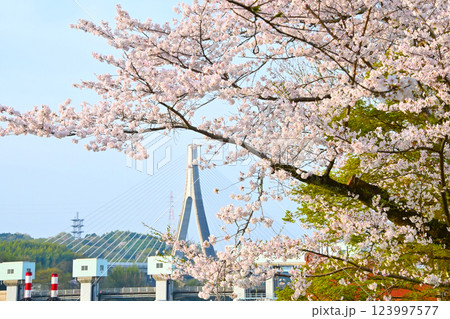 満開の桜と豊田アローズブリッジ