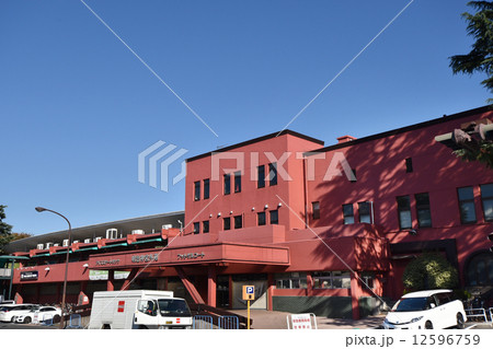 明治神宮外苑アイススケート場の外観 JR千駄ヶ谷駅近く 冬晴れの青空 東京都新宿区