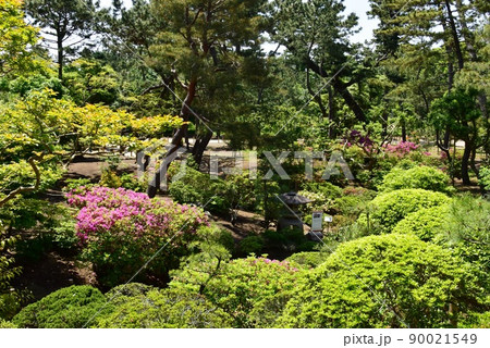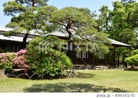大磯町 明治記念大磯邸園散策路と庭園の新緑と満開ツツジ