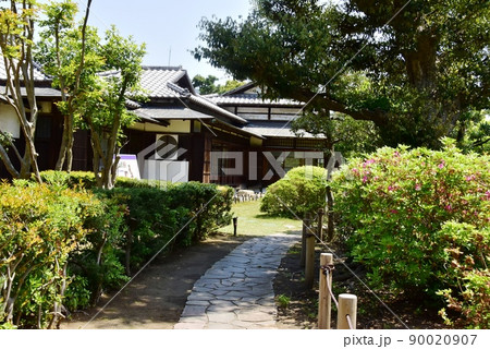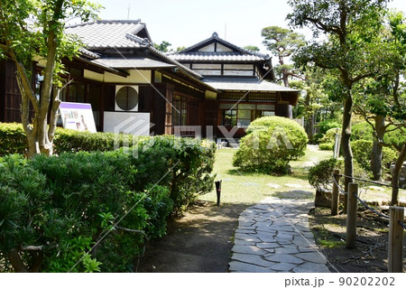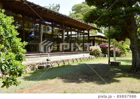 大磯町 明治記念大磯邸園散策路と邸宅と新緑