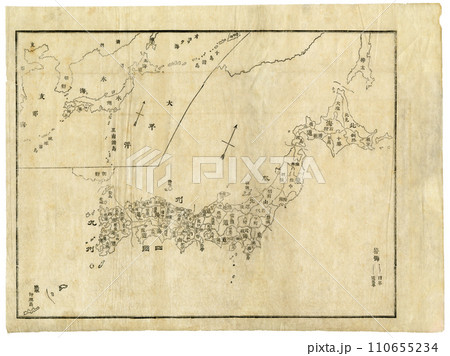 江戸末期から明治初期の日本地図を、白い和紙の背景に
