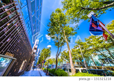 日本の東京都市景観 東京・表参道の緑溢れる並木やFENDIなどを望む