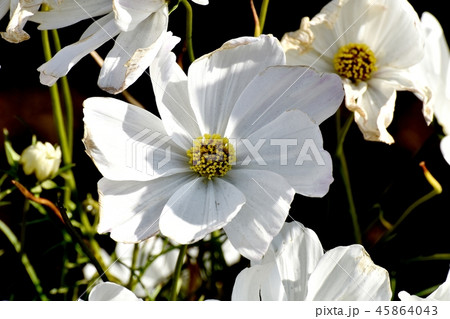 三鷹中原に咲く白いコスモスの花