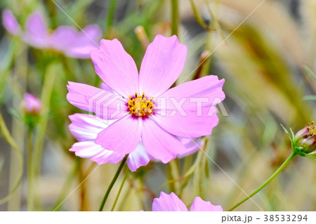 三鷹中原に咲く淡い紫色のコスモスの花