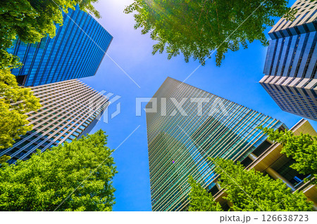 日本の東京都市景観 新時代へ…緑溢れる大手町。大手町プレイスなどを望む。希望の光
