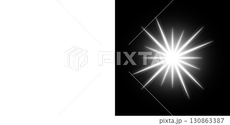 透明背景と黒背景に浮かぶ白色の光のバースト