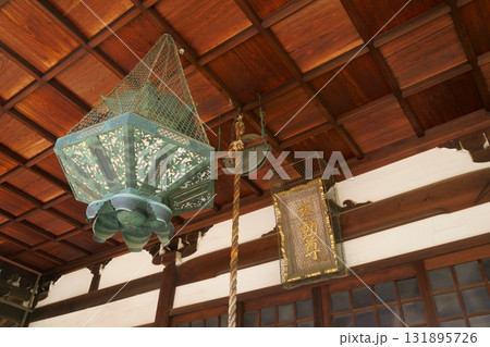 建中寺 不動堂の扁額と吊り灯籠