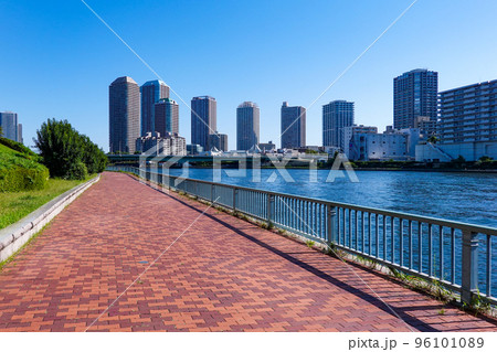 東京 中央区の都市風景 隅田川と聖路加ガーデンタワー