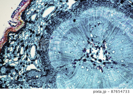 双子葉植物の茎の断面(木質) 顕微鏡画像