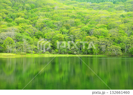 新潟津南町 竜ヶ窪の水面に映る木々