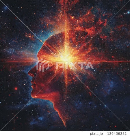 Cosmic illustration of a human silhouette with vibrant colors and a radiant explosion of light