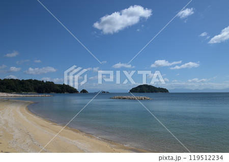 「星のビーチ」沖に瀬戸の島々(山口県周防大島町)