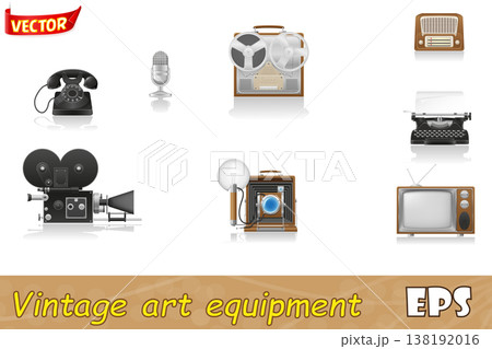 vintage and old art equipment video photo phone recording tv radio writing vector illustration