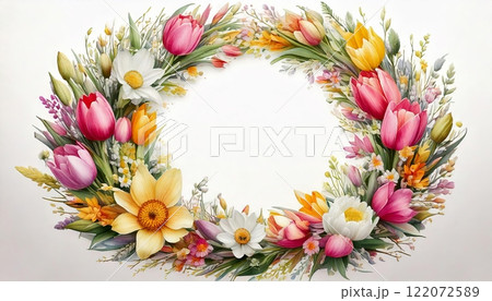 Floral wreath with vibrant spring flowers