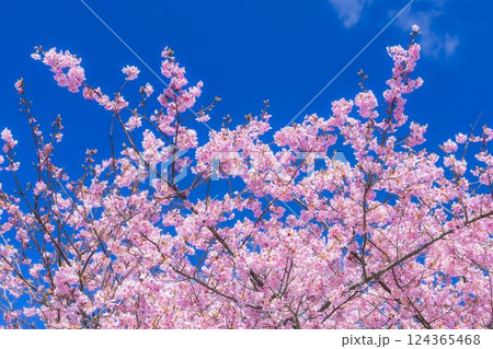 青空と21世紀の森公園に咲く河津桜 福島県いわき市