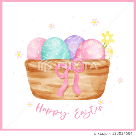 Coquette Easter Egg Basket watercolor Hand Drawn