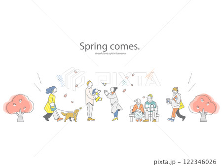 春を喜ぶいろいろな人々 カラフルで楽しいフラットイラスト