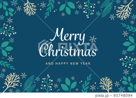 花の装飾フレーム デザインテンプレート ネイビー&ホワイト