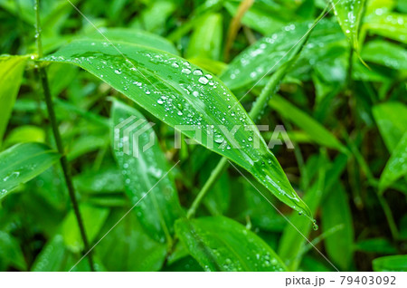 那須高原、雨上がりのクマササ、新緑の美しい山道、