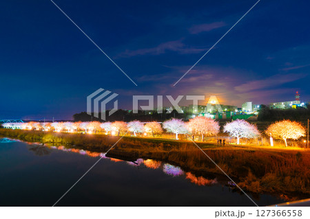 月夜のソメイヨシノのライトアップ