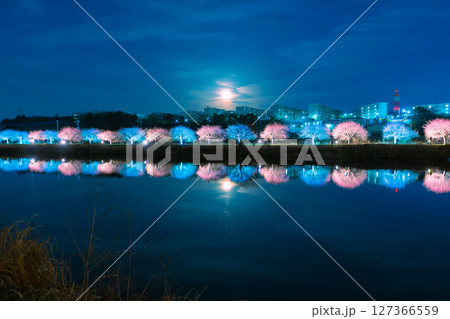 月光が輝くソメイヨシノのライトアップ