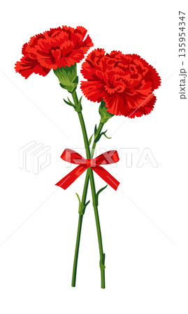 赤いカーネーションの花束とリボン(背景透過) 母の日のプレゼントのイラスト素材