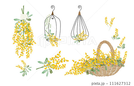 ミモザ・ミモザのスワッグ・カゴに入ったミモザ