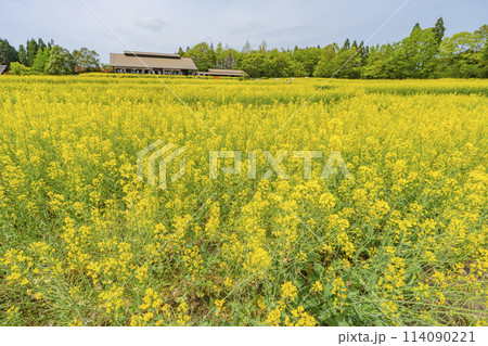 段々畑にたくさん咲いた菜の花 国営みちのく杜の湖畔公園 宮城県川崎町