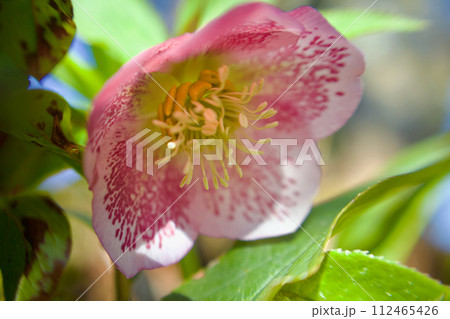 早春に咲くクリスマスローズ、そっとうつむくその花の中は華麗