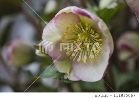 林の中にひっそりと日差しを浴びて咲くクリスマスローズ