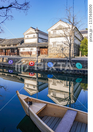 春のイベント 和傘が並ぶ倉敷美観地区の町並み(岡山県倉敷市)