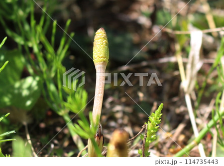 春を待ち、春を感じさせるつくし(土筆)背景はぼけ画像