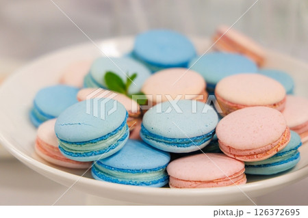 Delightful pastel macarons arranged on a beautiful white plate at a springtime gathering