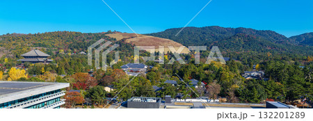 パノラマ 1億3千万画素 紅葉の奈良公園 東大寺、若草山、春日山 2023年11月22日