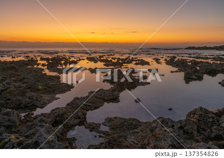 屋久島最大の隆起サンゴ礁 春田海岸の夜明け(冬