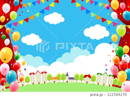 初夏の街並み劇場、イラスト、背景、横、かわいい