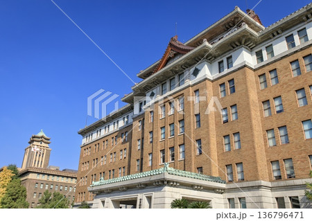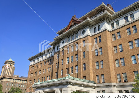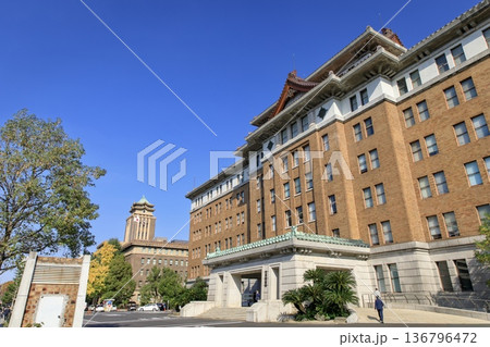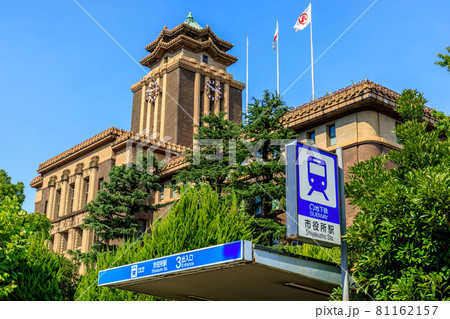 名古屋市 名古屋市役所の市庁舎と地下鉄名城線の市役所駅