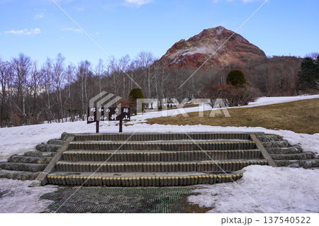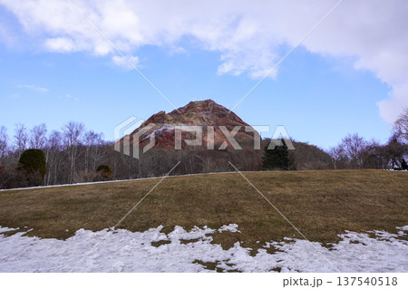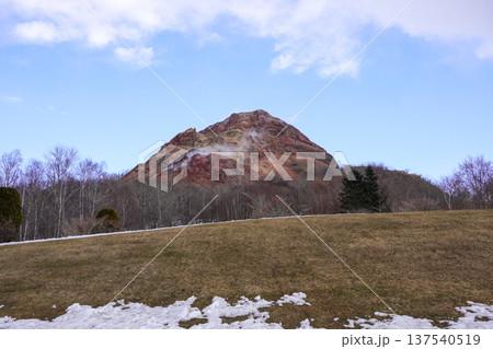 春の北海道壮瞥町昭和新山の風景を麓から撮影