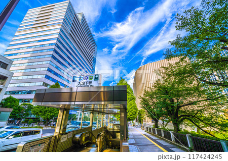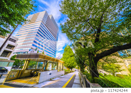 日本の東京都市景観 九段下駅(出入口2)や昭和館などを望む=8月15日