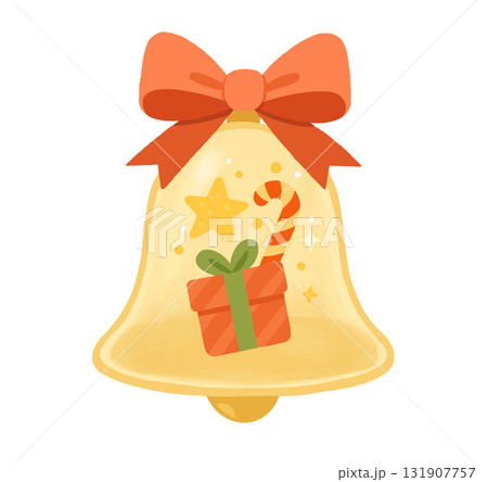 節慶聖誕鐘裡有一個聖誕禮物和糖果棒插圖