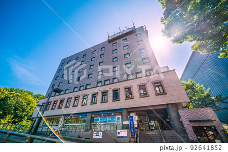 日本の横浜都市景観 昭和大学横浜市北部病院の前にあるウォール薬局などを望む=横浜市都筑区