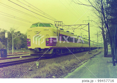 特急「あずさ」7号(13M)クハ189-10他、東小金井ー武蔵小金井(沿道)、1977年2月27日