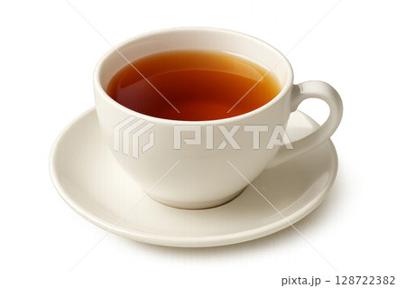 Hot Cup of Tea Served in a White Porcelain Cup on a Small Plate