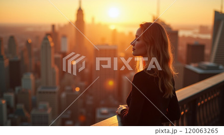Golden Beauty Young Woman in Black Enjoying the Cityscape