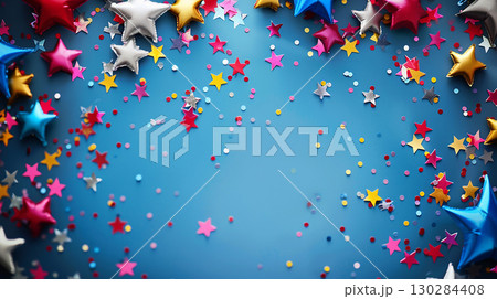 Party helium star balloons for event design on blue background. Birthday wallpaper for design
