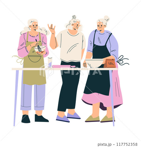 Nursing Home with Retired Woman Character Cooking and Baking Vector Illustration