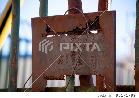 錆びた飛出注意の標識 刮目して警戒せよ