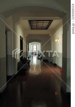 神戸旧居留地のチャータードビル(旧チャータード銀行神戸支店)エントランス イオニア式列柱の近代建築
