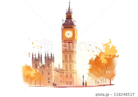Discover the charm of London with this captivating illustration of Big Ben in autumn