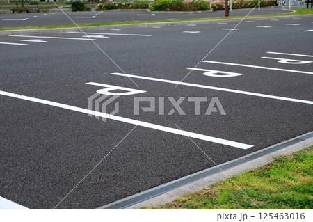 駐車場 アスファルトにラインを引いたばかりの駐車場